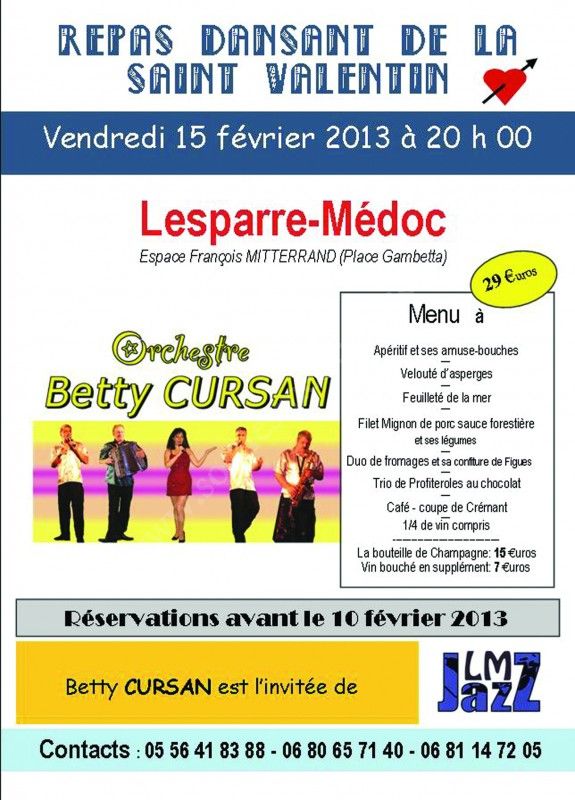 Betty CURSAN animera la soirée qui réservera une délicate attention, à chaque dame, présente dans la salle.