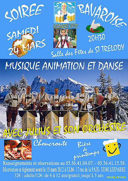 Venez assister à la soirée Bavaroise avec musique animation et danse.
