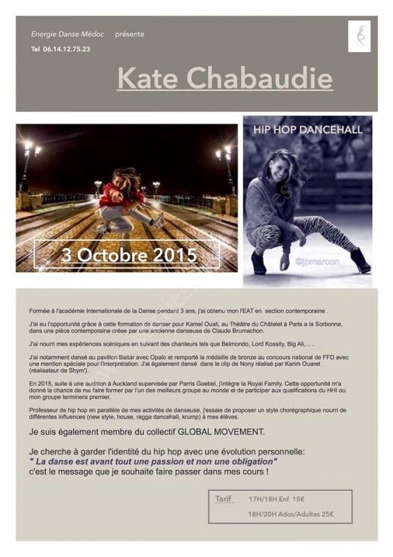 Stage de Dance Hall avec K. Chabaudie à l’école de danse « Energie Danse Médoc » à LESPARRE.