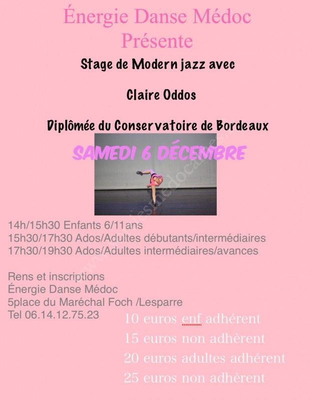 Stage de Modern Jazz proposé par Claire Oddos à l’Ecole de danse Energie Danse Médoc à LESPARRE.
