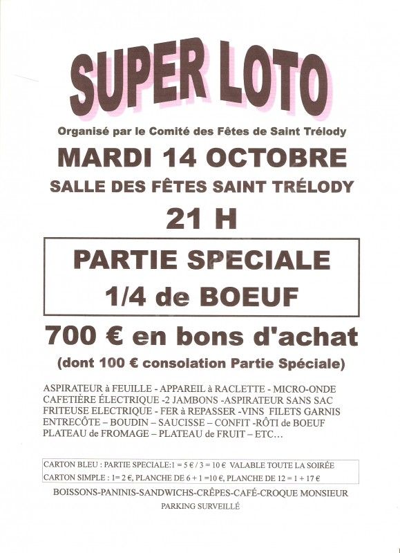 Super loto organisé par le Comité des Fêtes de St Trélody.