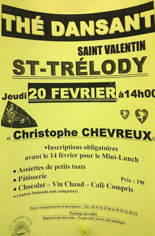 - Lieu : Salle des Fêtes de Saint-Trélody