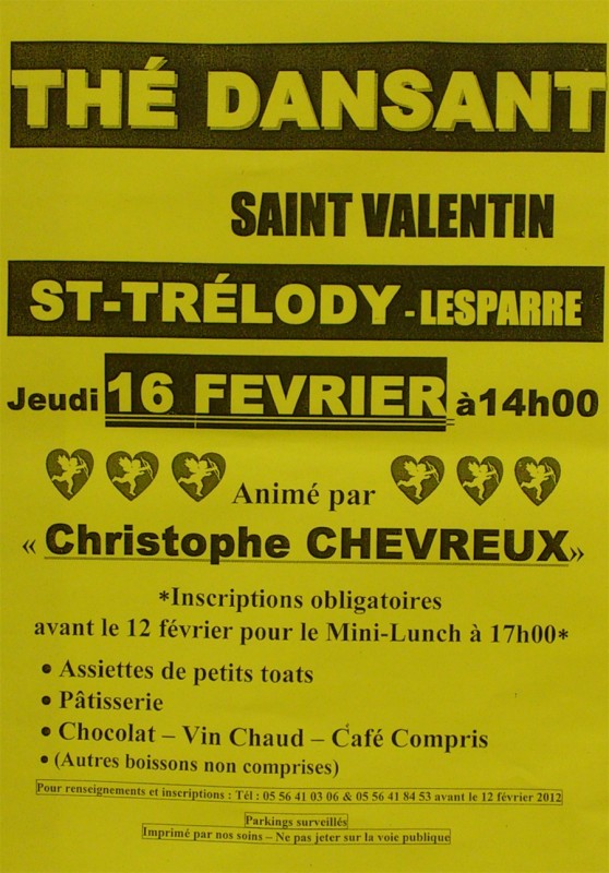 Thé dansant spécial St Valentin animé par Christophe Chevreux.