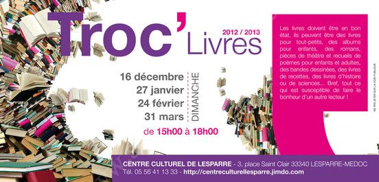 Apportez des livres, échanger des livres contre 1, 2 ou 3 marque pages avec lesquels vous pourrez choisir de nouveaux livres !