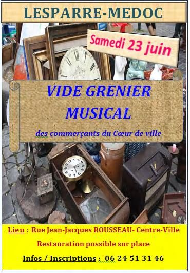 A Lesparre, venez chiner dans une ambiance festive avec des musiciens amateurs qui égaieront votre journée : vous êtes vous même musiciens et souhaitez venir faire partager votre musique ce jour là ? contactez Christelle par téléphone.