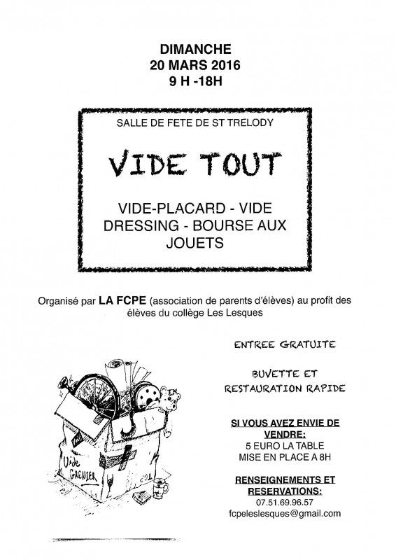 Vide tout organisé par LA FCPE (association des parents d'élèves) au profit des élèves du collège Les Lesques.