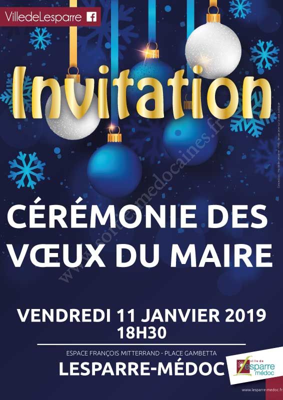 vous présentent leurs meilleurs vœux pour l’année 2019 et vous convient à la cérémonie des vœux à la population qui se déroulera à l’espace François Mitterrand le vendredi 11 janvier 2019 à 18h30