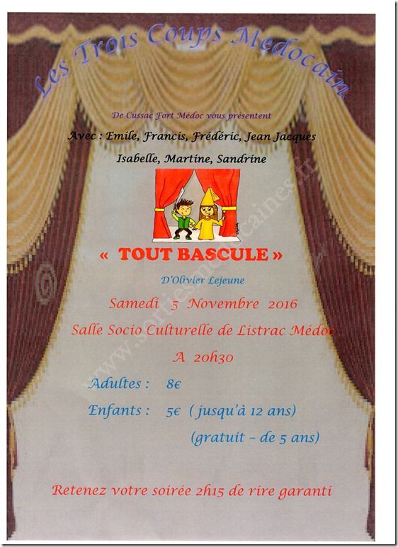 Les Trois Coups Médocains de Cussac-Fort-Médoc vous présentent "Tout Bascule" d'Olivier Lejeune.