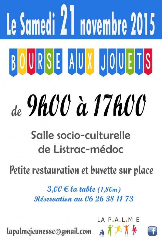L'association la palme jeunesse de Listrac Medoc organise sa bourse aux jouets annuel à la salle socio culturelle de Listrac.