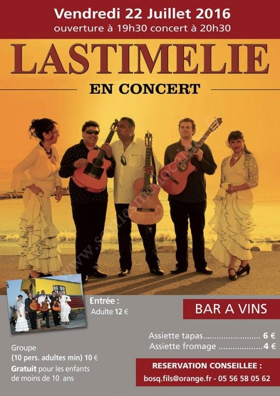 LASTIMELIE est un groupe de gitans Catalans, tous frères ou cousins des GIPSY Kings et dont la raison de vivre est la rumba gitana véritable expression moderne de la culture gitane. Les Gipsy Kings feront appel à leurs talents et seront leur parrains de scène. Natif de Montpellier, c’est en Camargue que LASTIMELIE puise cette expression incomparable qui diffuse joie et liberté. Chanteur, guitariste, soliste de nouveaux talents, leur succès international et leur répertoire leurs permettent de se produire en concert ou en soirée privée . Du chant traditionnel à Bamboléo, en passant par leurs compositions personnelles, le groupe s’adaptera à votre désir, pour une soirée inoubliable.