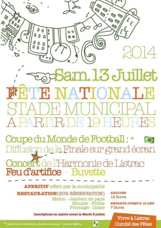 Possibilité de réserver votre repas (12€/pers. - 7€ jusqu'à 10ans) avant le mardi 9 juillet 2014.