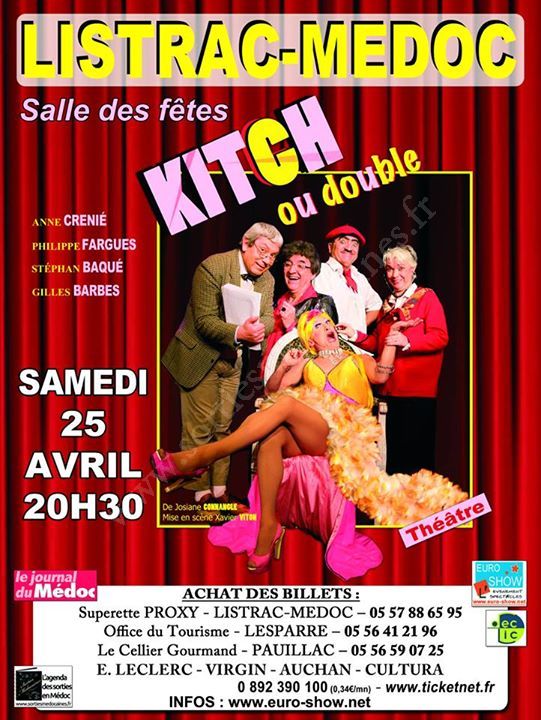 "KITCH OU DOUBLE" est une pièce de théâtre humoristique sur une idée originale de Gilles et Stephan de la compagnie ZIGOTO, écrite par Josiane Connangle, adaptée et mise en scène par Xavier Viton, dans des décors de Nicolas Delas.