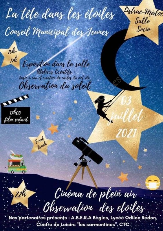 - 22h00 : séance de cinéma en plein air puis observation des étoiles !
