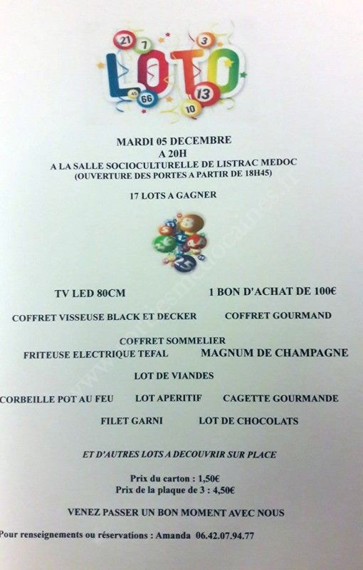 L'association les sarments listracais organise des lotos tous les mardi soirs.