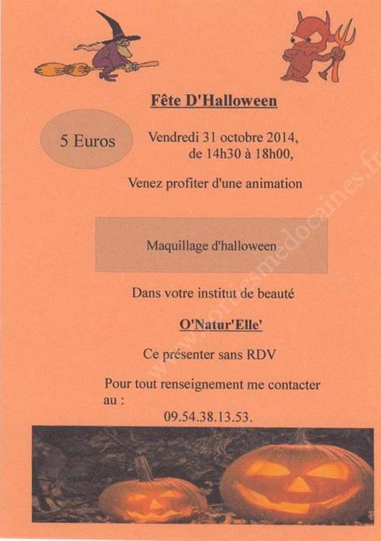 Venez profiter d'une animation maquillage d'halloween pour petit et grand dans l'institut de beauté O'Natur'Elle' sur Listrac-Médoc.