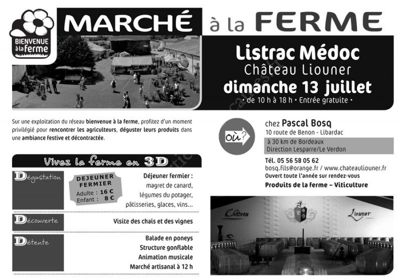 - Dégustation : Déjeuner fermier (16€/pers. - 8€/enfant) - Menu : magret de canard, légumes du potager, pâtisseries, glaces, vins ...