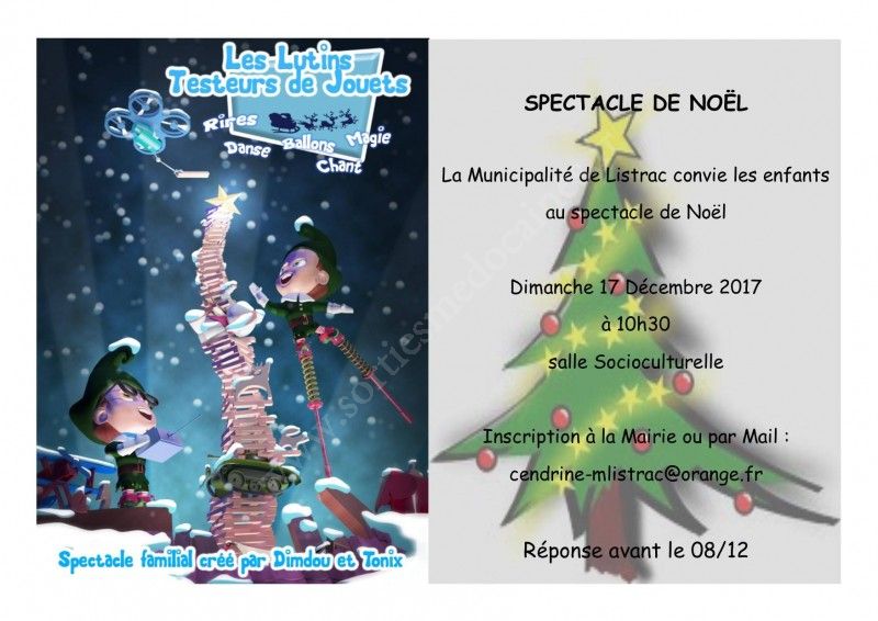 La Municipalité de Listrac convie les enfants au Spectacle de Noël.