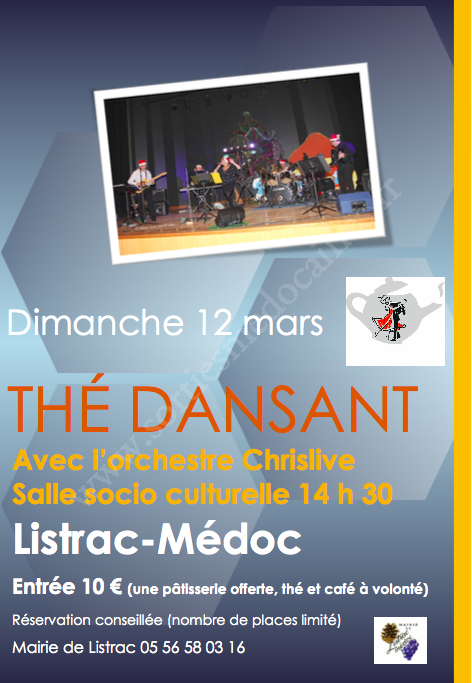 Ce thé dansant est animé par l'orchestre Chrislive, il vous est proposé par la municipalité et le CCAS de Listrac-Médoc.