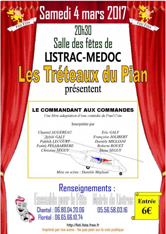 Une libre adaptation d'une comédies de Paul Cote, interprétée par "Les Tréteaux du Pian" du PIAN MEDOC