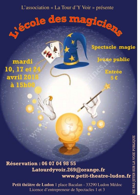 L'association La Tour D'y Voir y invite les enfants curieux et leurs parents à venir vivre et partager un moment de spectacle vivant "A l'école des magiciens" de Phil, où tours de magie, modelage de ballons et participation active des jeunes spectateurs, garantissent rires et émotions.