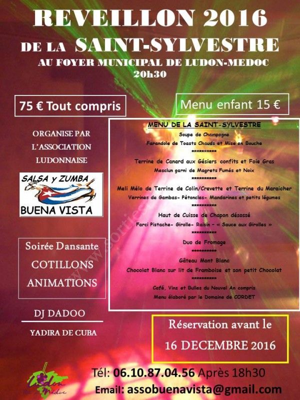 Réveillon de la Saint Sylvestre 2016 organisé par l'Association Ludonnaise Buena Vista, animée par DJ Dadoo.