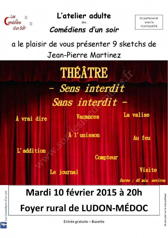 L’atelier adulte des Comédiens d’un soir a le plaisir de vous présenter 9 sketchs de Jean-Pierre Martinez :