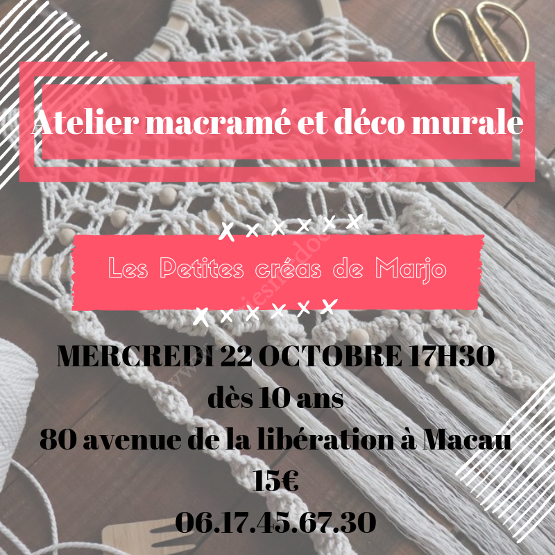 venez vous essayer à l'art du macramé, vous repartirez avec votre création.