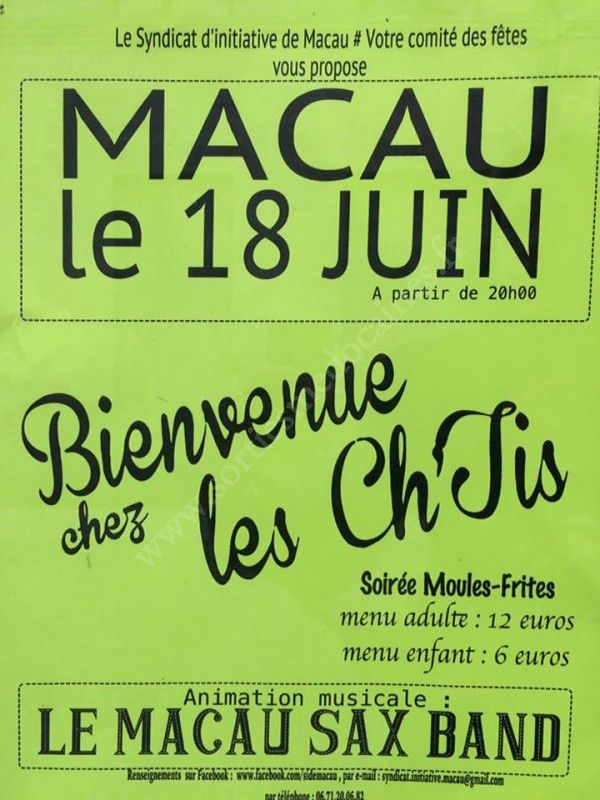 Mise à jour du 13/06/16 : ⛔ En raison d'une météo très très incertaine samedi, nous sommes dans l'obligation d'annuler notre manifestation. Mais toute l'équipe du syndicat d'initiative de Macau vous retrouvera bientôt pour d'autres bons moments. ⛔
