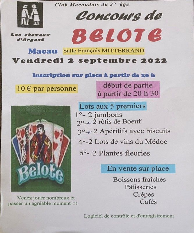 Concours de Belote organisé par Les Cheveux d'Argent.