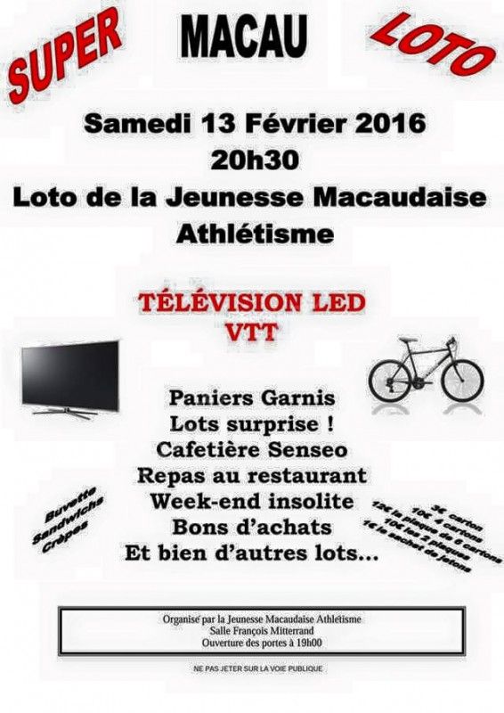 Loto organisé par la Jeunesse Macaudaise Athlétisme.