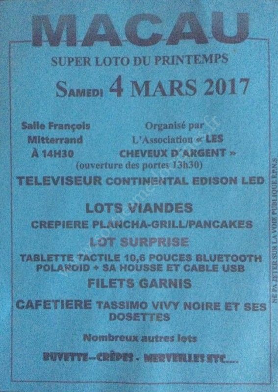 Super Loto du printemps organisé par l'association Les Cheveux d'Argent.