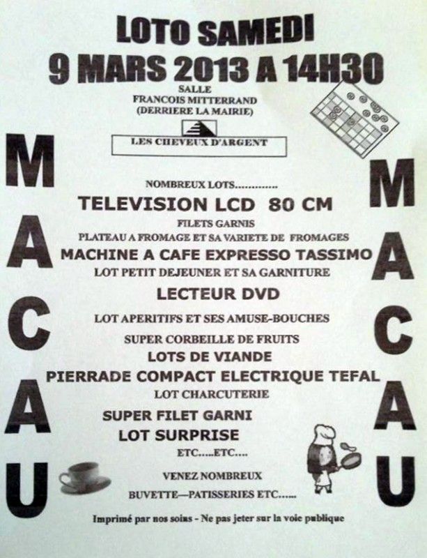 - Lieu : Salle François Mitterrand (Derrière la Mairie)