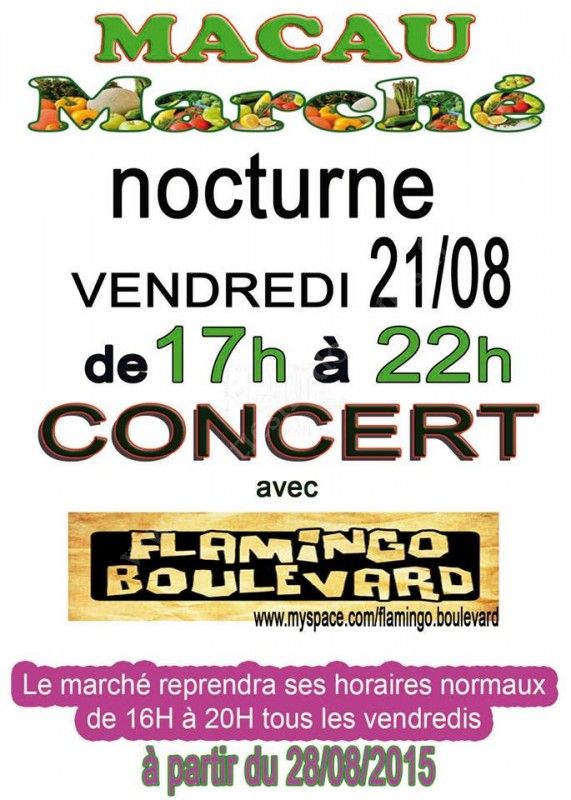 Marché nocturne avec concert de Flamingo Boulevard.