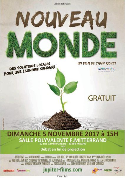 Nouveau Monde est un road-movie écologiste. Pendant 4 ans, le réalisateur a parcouru la France à la recherche des personnes et des initiatives locales qui portent l'espoir d'une société plus solidaire, un monde meilleur pour ses deux enfants. De l'intelligence collective à l'économie circulaire, des monnaies locales à l'idée d'un revenu de base, ce film nous guide à la découverte de ce Nouveau Monde.
