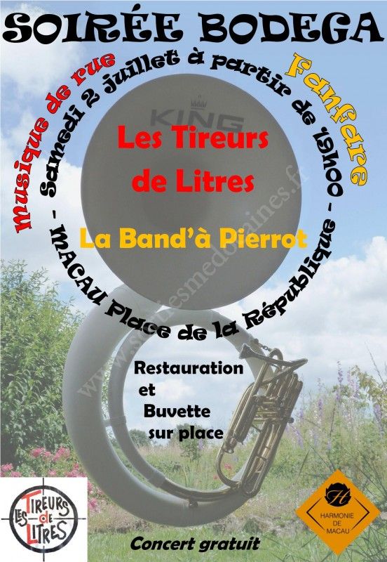 A cette occasion, deux bandas se partageront la scène : les Tireurs de Litres, banda du Lot et Garonne, et la Band'à Pierrot, groupe de rue local issu de l'Harmonie de Macau. Ambiance assurée avec un répertoire mêlant morceaux traditionnels des fêtes du Sud Ouest et nouveaux rythmes festifs.