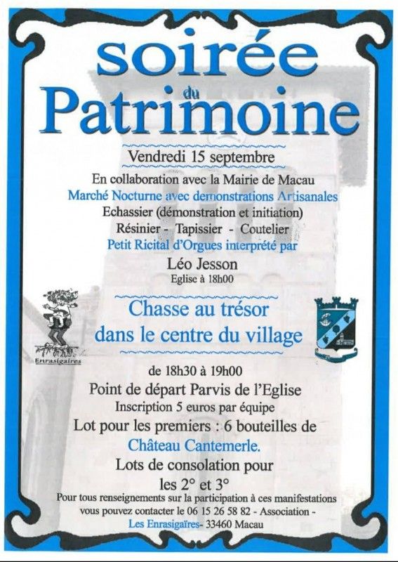 Soirée du Patrimoine 2017 organisée par l'association Les Enrasigaïres en collaboration avec la Mairie de Macau.