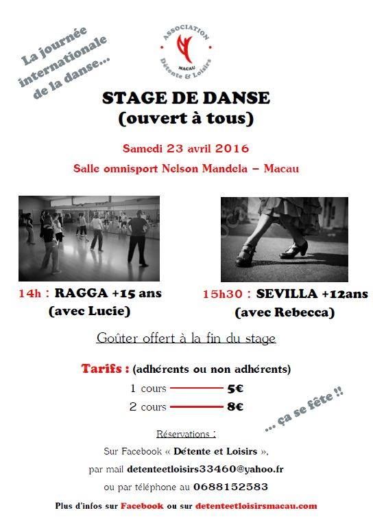 Stage de danse ouvert à tous le samedi 23 avril 2016 organisé par l'association Détente & Loisirs.