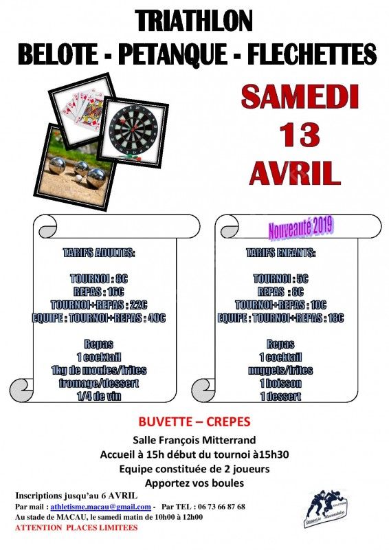Samedi 13 avril 2019 Tournoi belote - pétanque - fléchettes