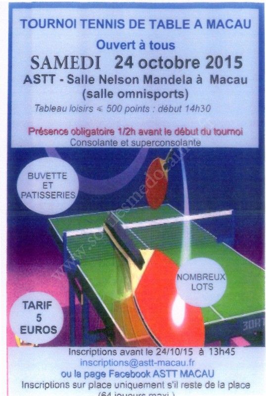 Inscription avant le 24 octobre 2015 à 13h45 (64 joueurs maximum).
