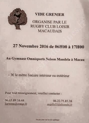 Vide-grenier organisé par le Rugby Club Loisir Macaudais.
