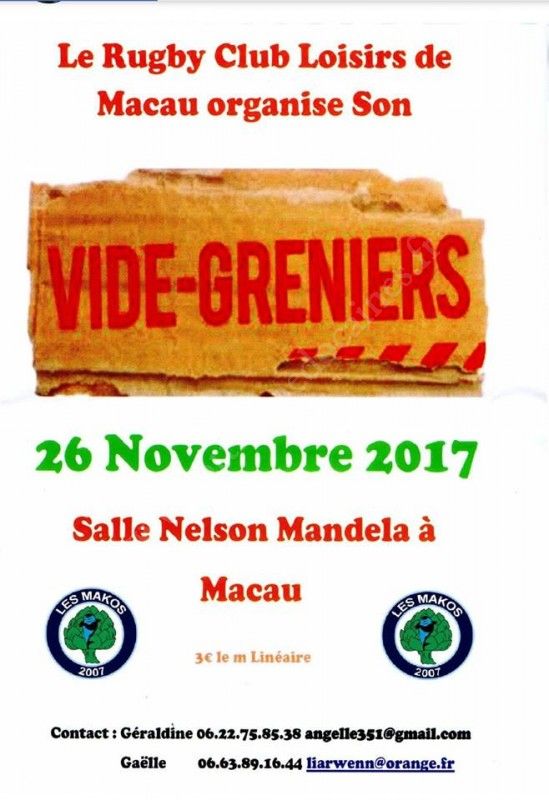 Le Rugby Club Loisirs de Macau organise son vide-grenier.