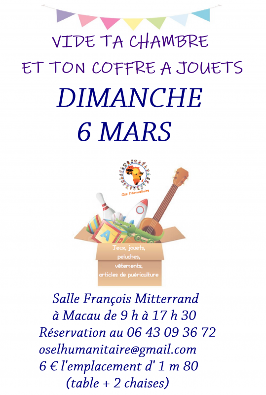 L'association OSE L'HUMANITAIRE organise son traditionnel "Vide ta chambre et ton coffre à jouets".