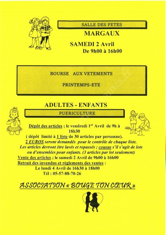 Vente des articles : samedi 2 avril 2016 de 9h00 à 16h00