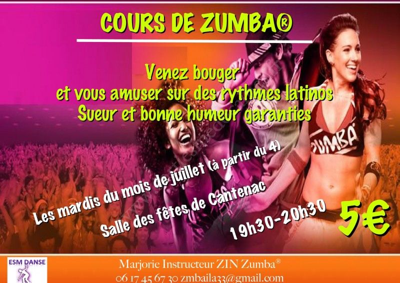 Marjorie vous propose des cours de Zumba® tous les mardis de juillet à partir du 4 juillet.