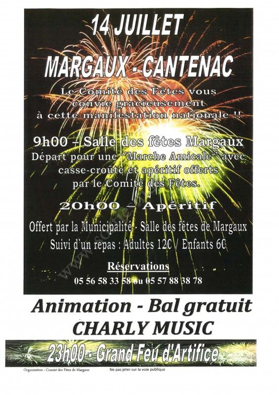 9h00 à la salle des fêtes de Margaux, départ pour une "marche amicale" avec casse-croûte et apéritif offert par le Comité des Fêtes.