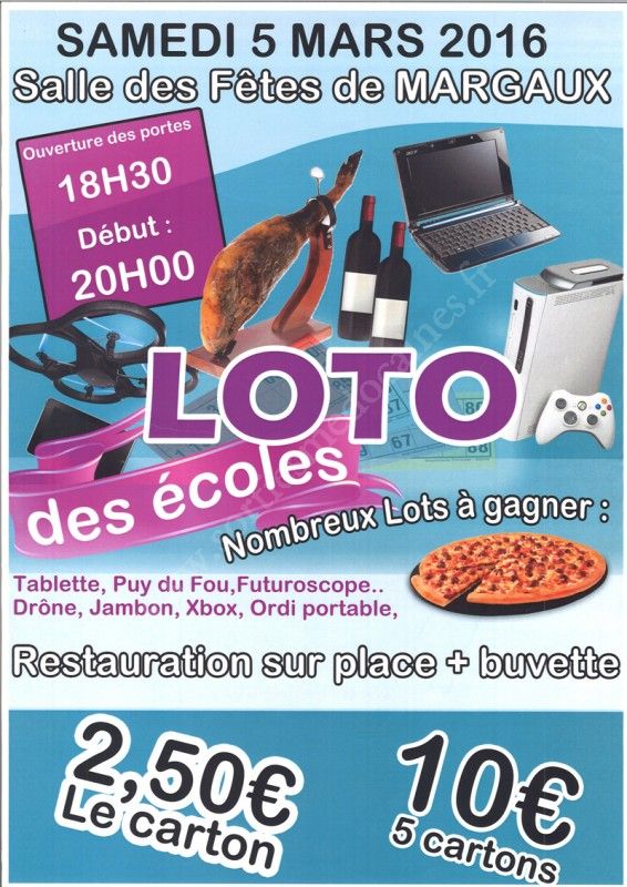 L’association des parents d’élèves, les écoles de Cantenac et de Labarde vous invitent à participer nombreux à leur loto annuel.