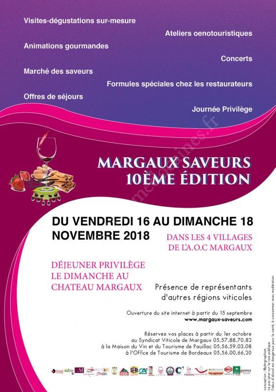 Du 16 au 18 novembre 2018, l’appellation Margaux, ses 4 villages, ses Châteaux et commerçants célèbreront la 10ème édition de Margaux Saveurs !