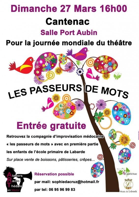A l'occasion de la journée mondiale du théâtre, retrouvez une représentation de la troupe d'impro médocaine "Les passeurs de mots" avec en première partie les enfants de l'école primaire de Labarde.