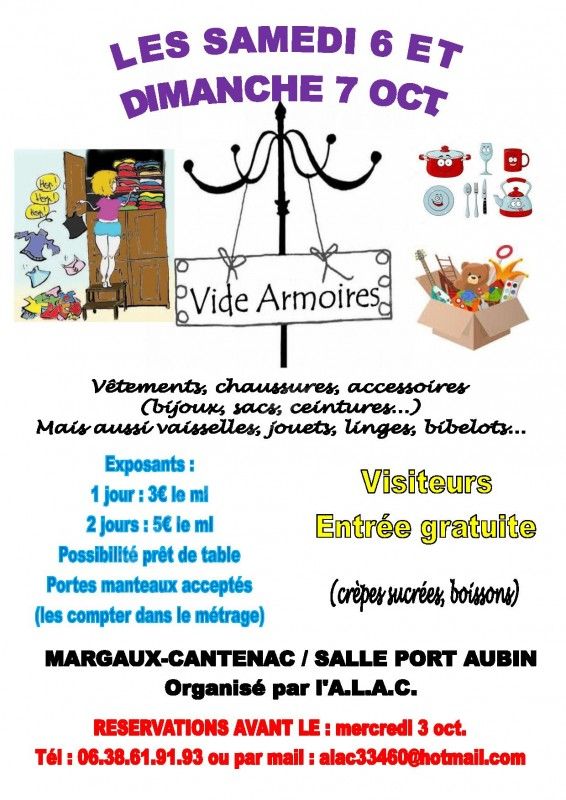 Vide armoires (vêtements, chaussures, accessoires, vaisseille, jouets, linge, bibelots, ...) organisé par l'A.L.A.C