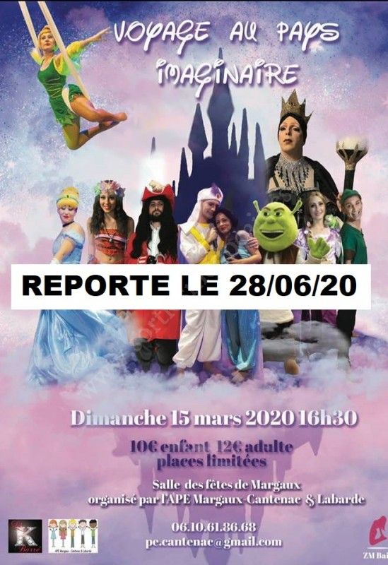 L’APE Margaux-Cantenac & Labarde, en association avec ZM Baïla, vous propose un spectacle magique à découvrir en famille, le dimanche 15 mars 2020 : Voyage au Pays Imaginaire